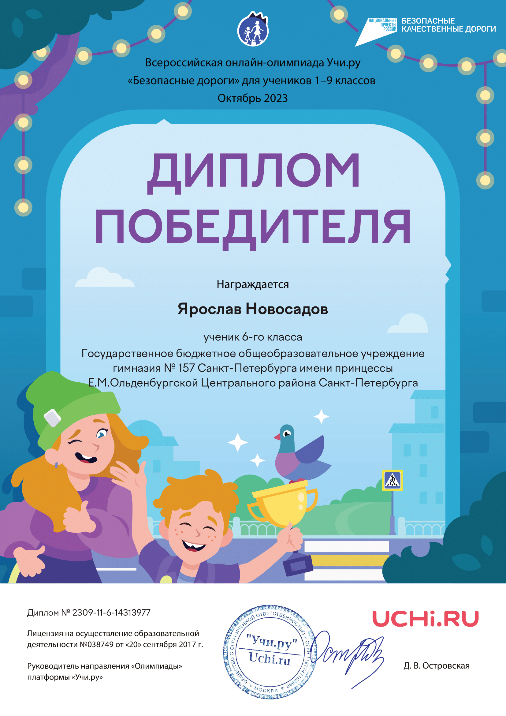 Дипломы участников олимпиады "Безопасные дороги - 2023"